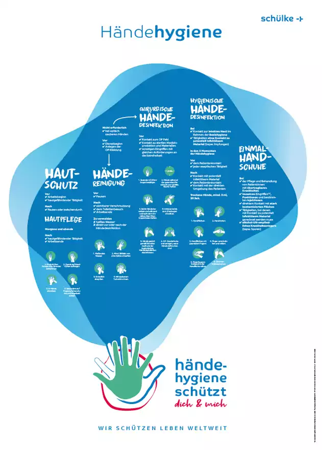 Bei der Umsetzung der Händehygiene in Ihrem Haus unterstützt Sie schülke gerne mit ansprechenden Materialien. Kontaktieren Sie bei Interesse an gedruckten Materialien Ihren schülke Gebietsverkaufsleiter oder den Customer Sales Service.